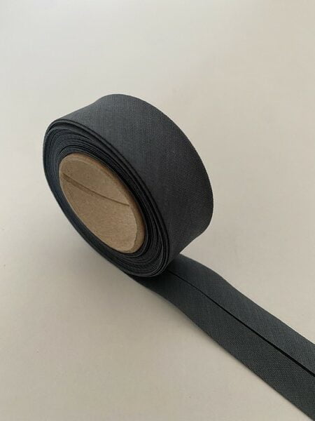 Bobine de biais Gris anthracite 20mm 5m. Biais replié idéal pour la finition de vos créations et les loisirs créatifs, accessoires.