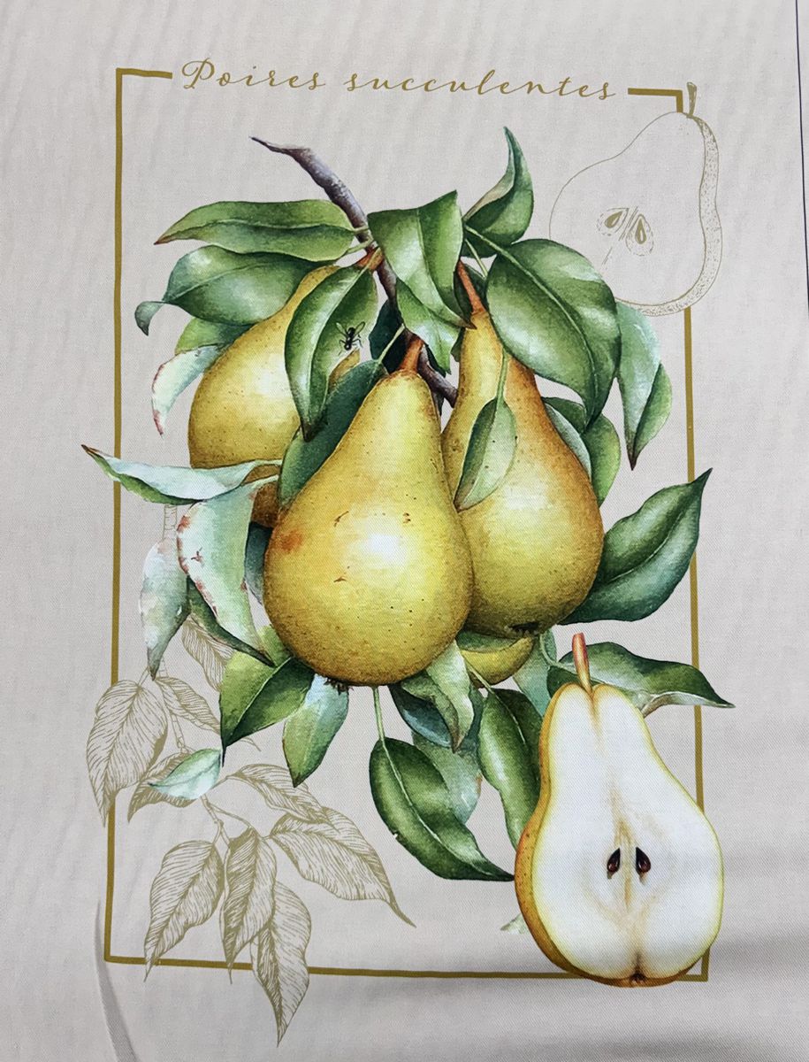 Apportez une touche de douceur et d’élégance à votre intérieur avec ce magnifique panneau déco “Poires succulentes”. Illustré de poires juteuses jaunes suspendues à une branche, accompagnées de feuilles vertes délicates et d’une poire tranchée révélant sa chair tendre, ce coupon décoratif offre une ambiance naturelle et raffinée.