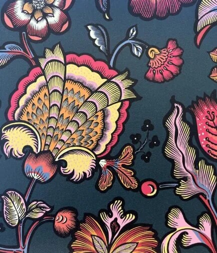 Papier peint Indienne Fond Bleu Pétrole édition Thevenon Paris