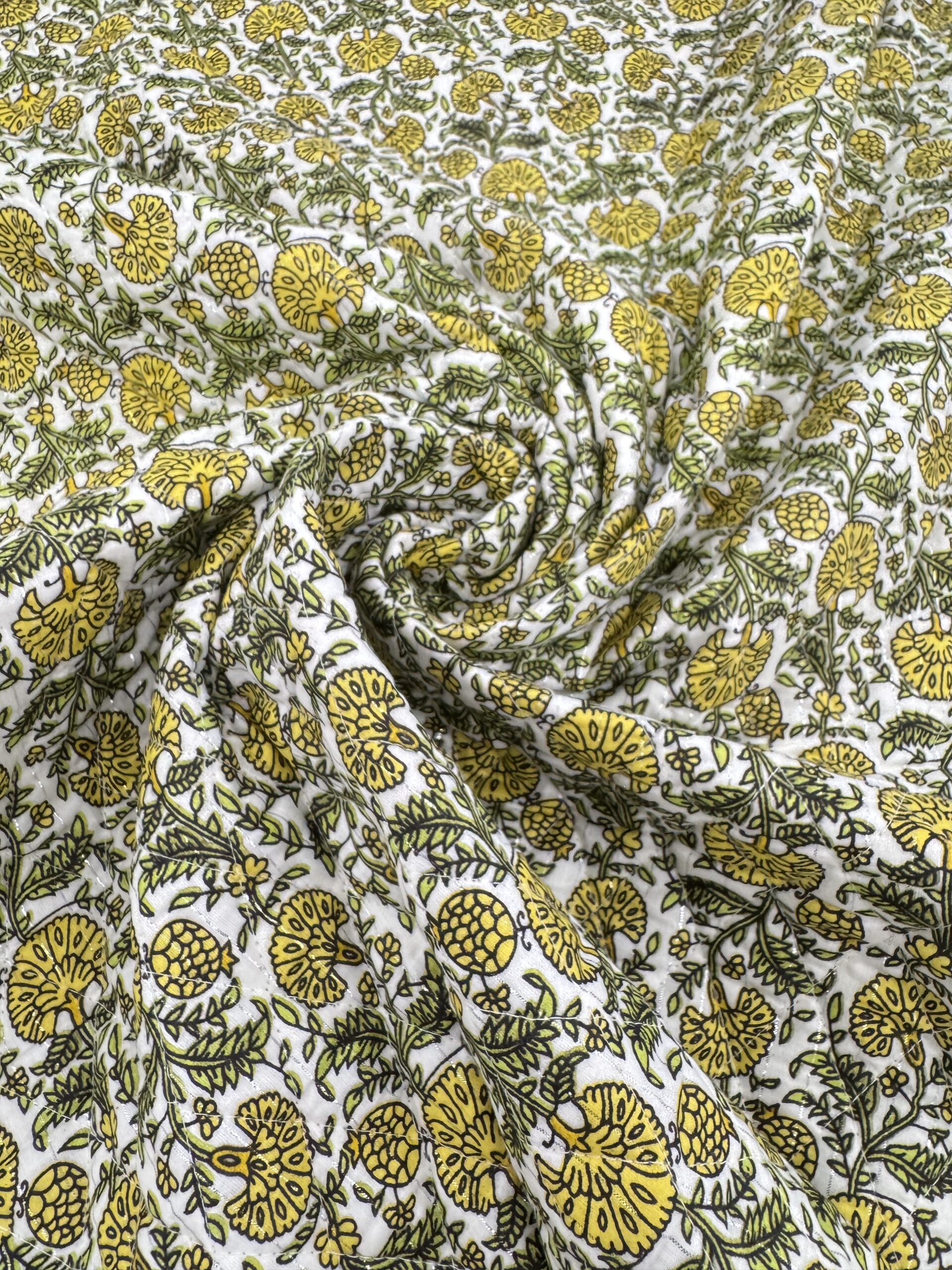 Tissu boutis matelassé réversible lurex Indien – Haldi Phool, jaune vif