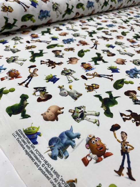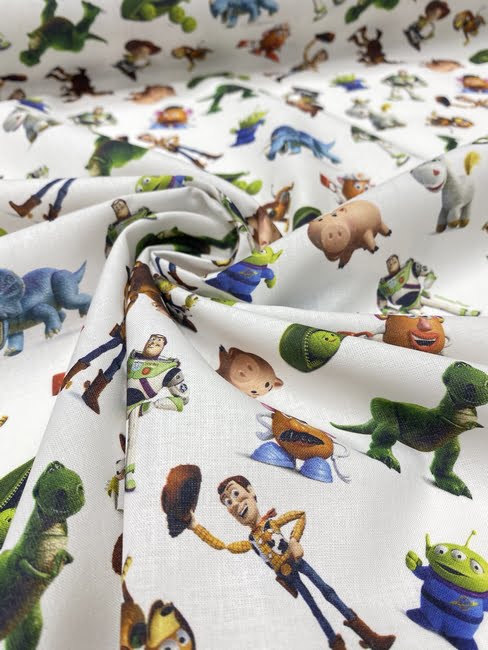Tissu coton imprimé Bio Certifié GOTS Toy Story – Multicolore, fond blanc