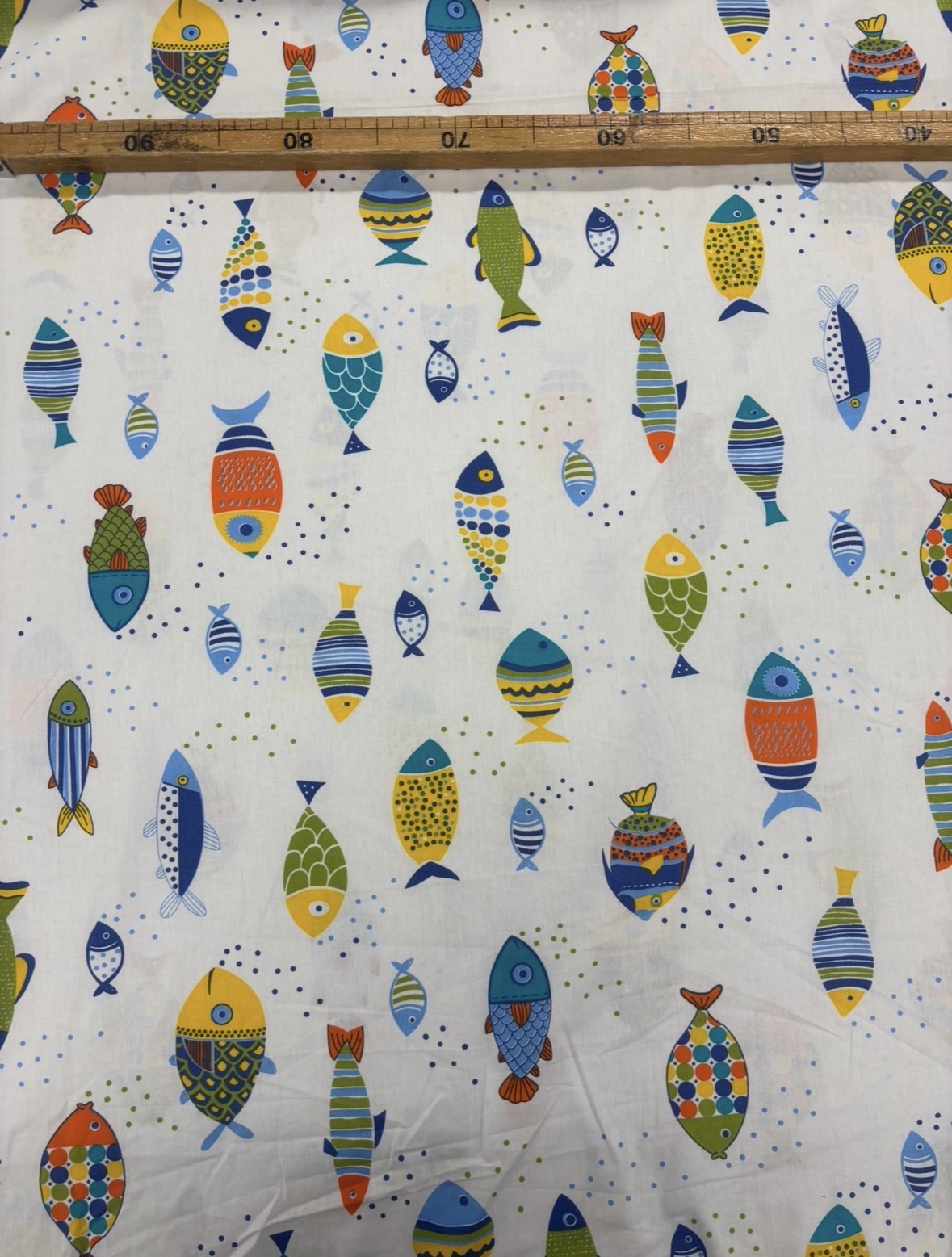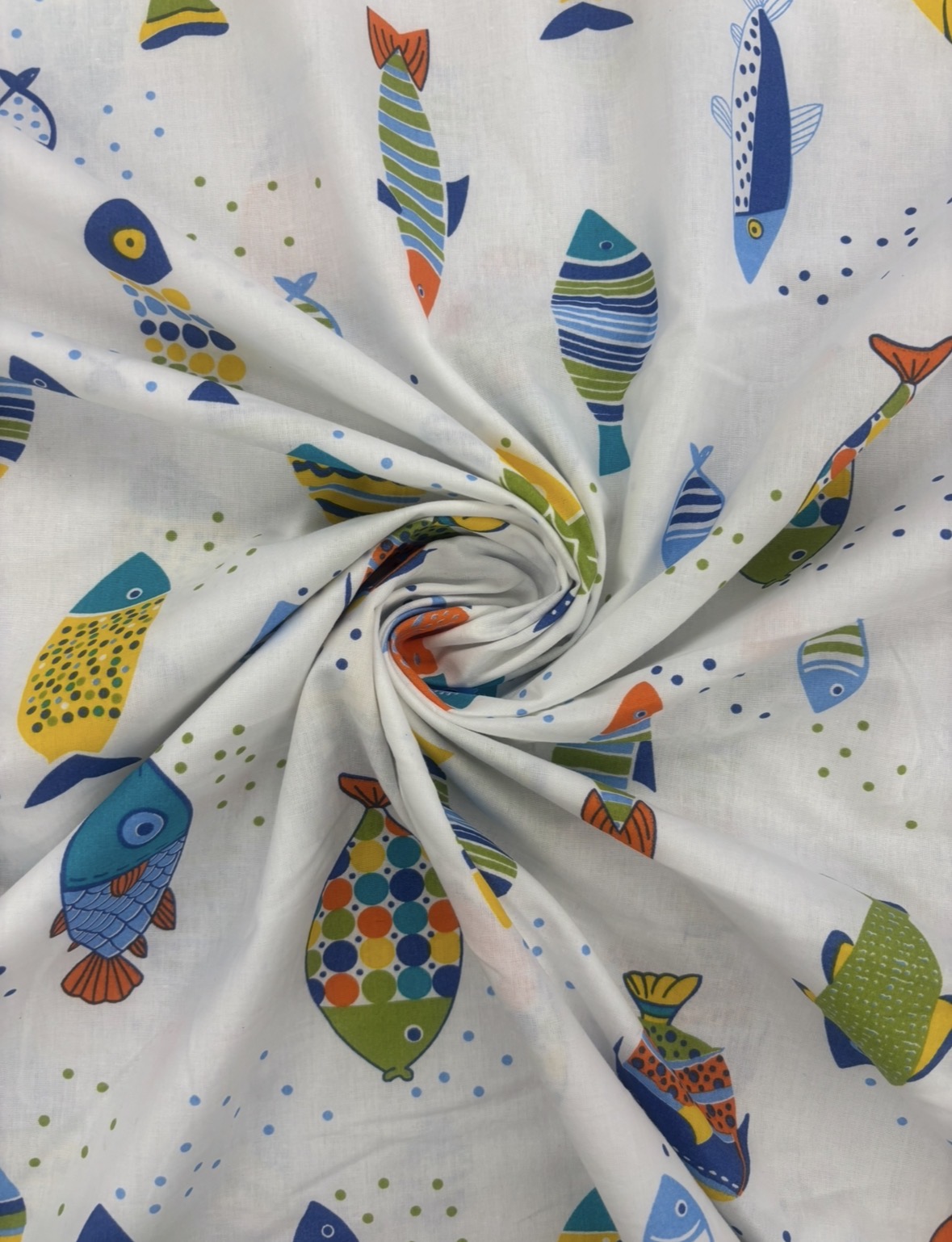 Tissu coton imprimé grande largeur 280 cm – Poissons, multicolore fond blanc