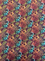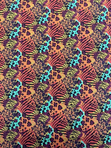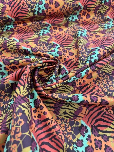 Tissu coton imprimé animalier multicolore – Un design audacieux qui associe des motifs léopard et zébrés dans des teintes éclatantes : turquoise, vert anis, orange. Léger et agréable au toucher, ce coton est parfait pour vos créations couture originales : vêtements estivaux, accessoires tendance ou déco intérieure pleine de pep’s.