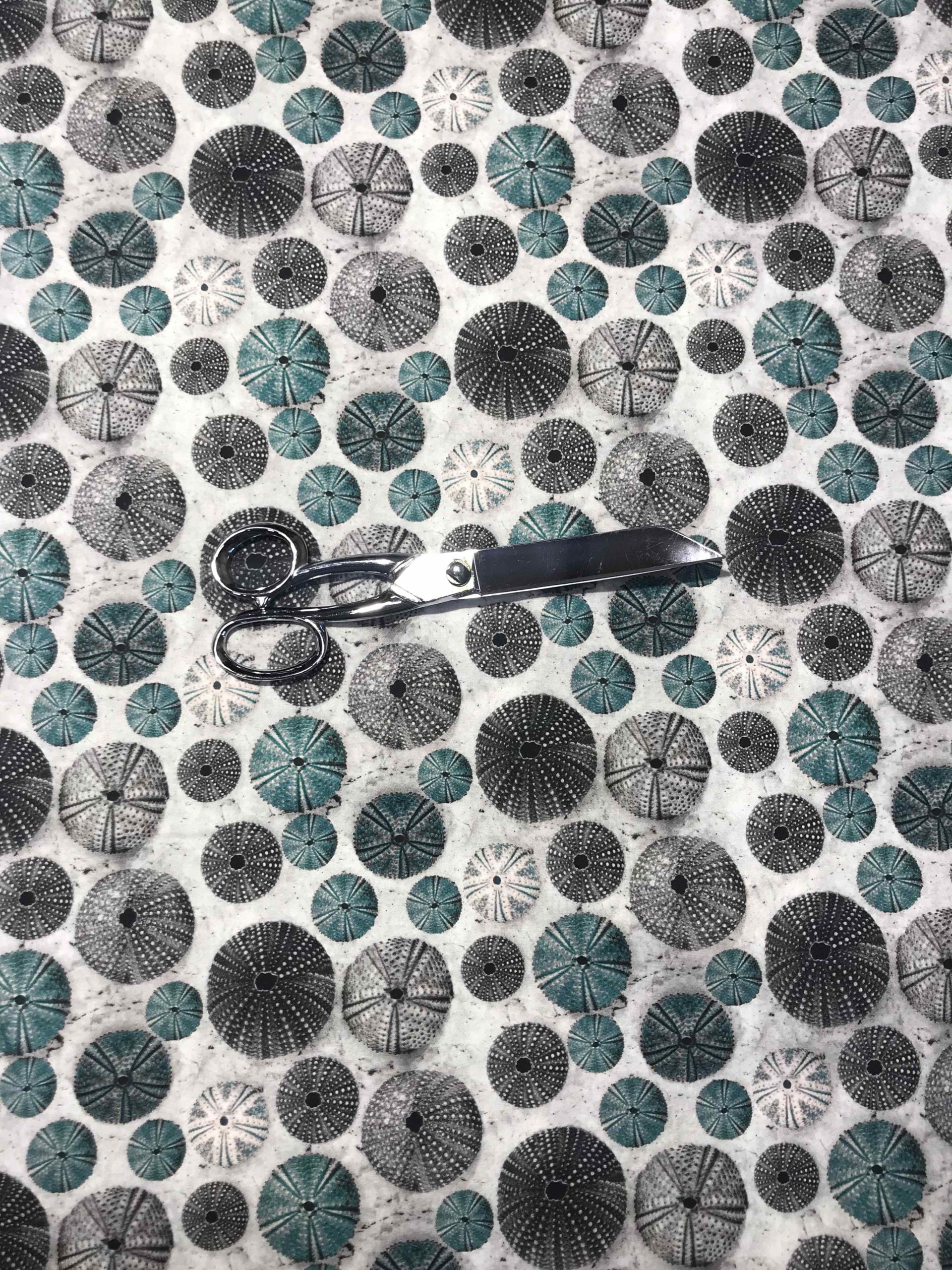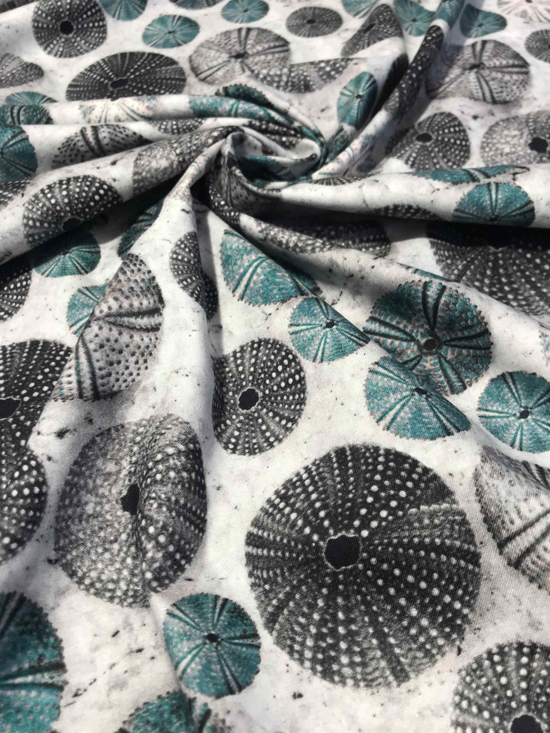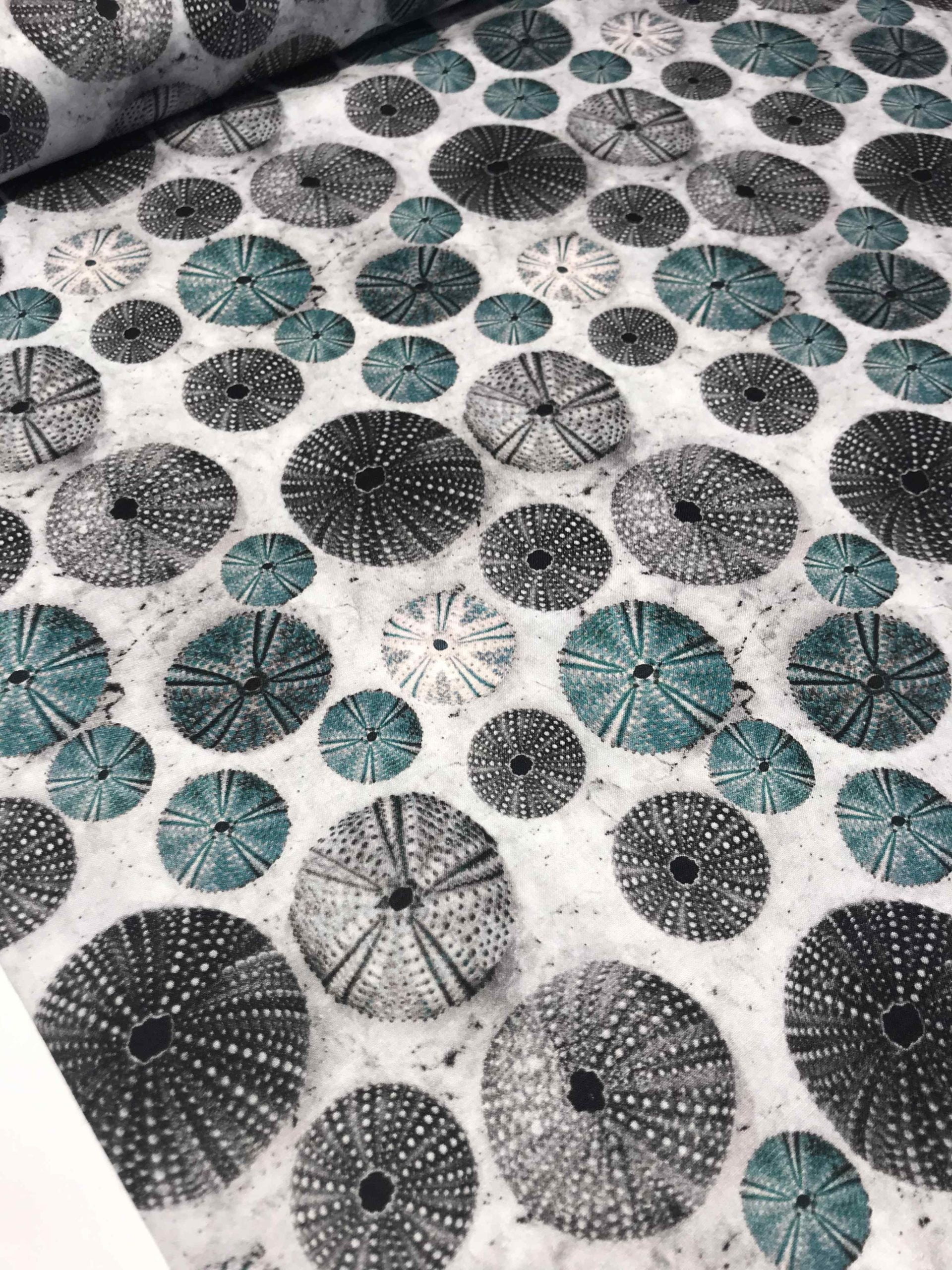 Adoptez ce tissu 100% coton spécial patchwork largeur 115 cm motif : thème mer, oursin . Coussins, petits rideaux, taies d’oreiller, créations vestimentaires… les tissus coton sont également très utilisés pour la création d’accessoires, sacs, pochettes. Qualité supérieure 57 fils, Coton OekoTex®.
