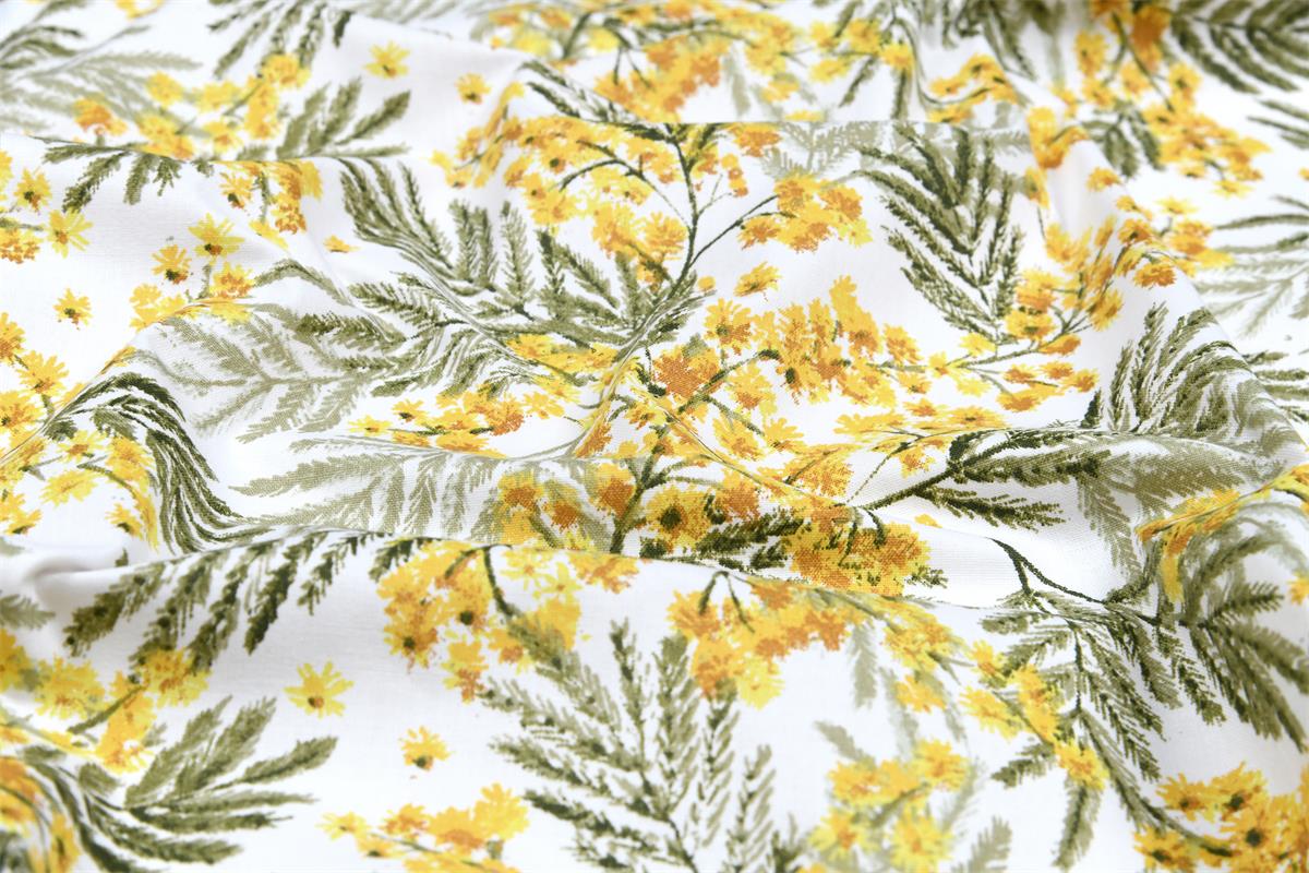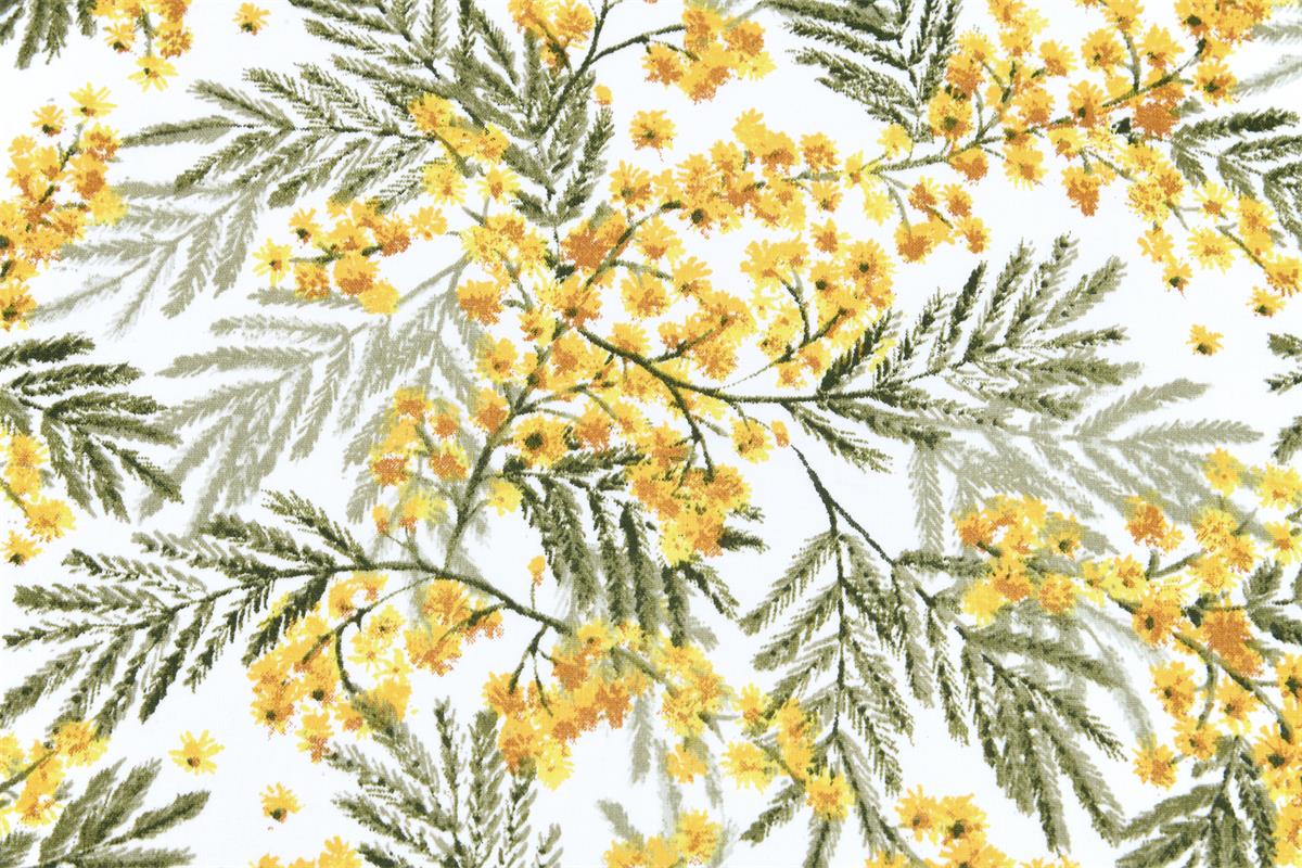 Tissu coton imprimé, apportez une touche de nature et d’élégance à vos créations avec ce tissu en coton imprimé mimosa. Son motif raffiné aux délicates branches fleuries dans des tons jaunes et verts sur fond blanc évoque la douceur du printemps. Léger et agréable au toucher, ce tissu est parfait pour la confection de vêtements, d’accessoires ou d’éléments de décoration intérieure. Idéal pour des réalisations inspirées et lumineuses.