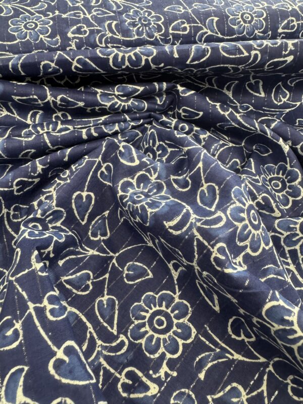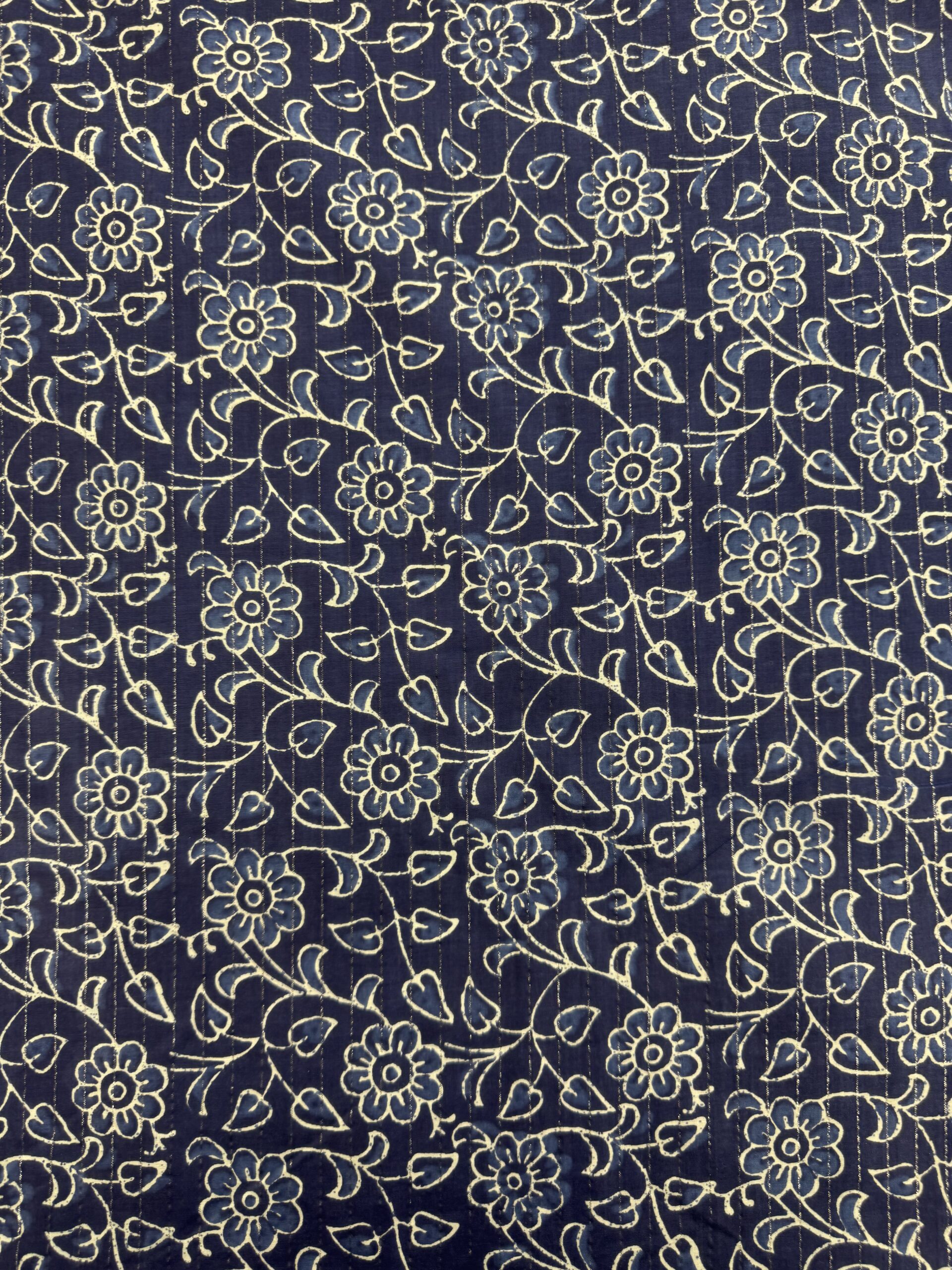 Tissu coton indien lamé – Fleurs, fond bleu