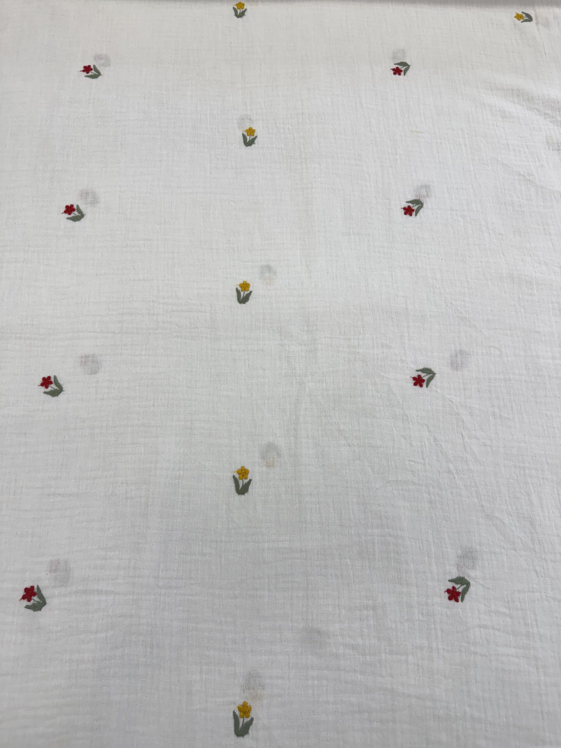 Tissu double gaze brodée – Fleurs, fond blanc