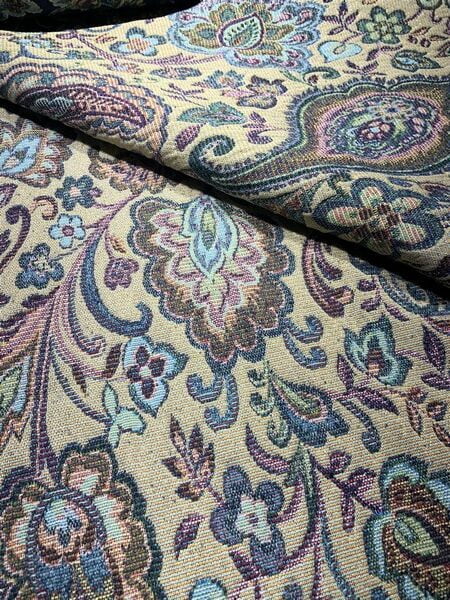 Magnifique jacquard lainage motif : cachemire et lurex. Ce jacquard d’habillement épais et chaud sera parfait pour la réalisation de vos vêtements automne et hiver : vestes, jupes lourdes, tailleurs, accessoires, convient aussi pour de la décoration d’ameublement.