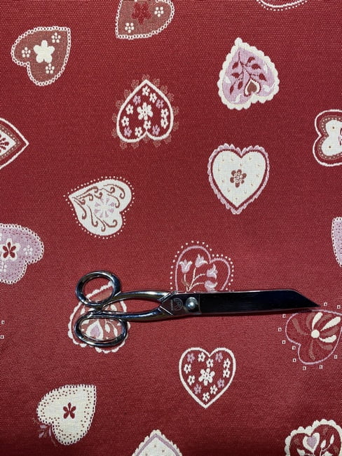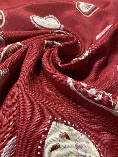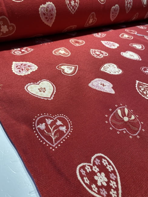 Tissu jacquard Montagne Petits cœurs – Rouge, écru