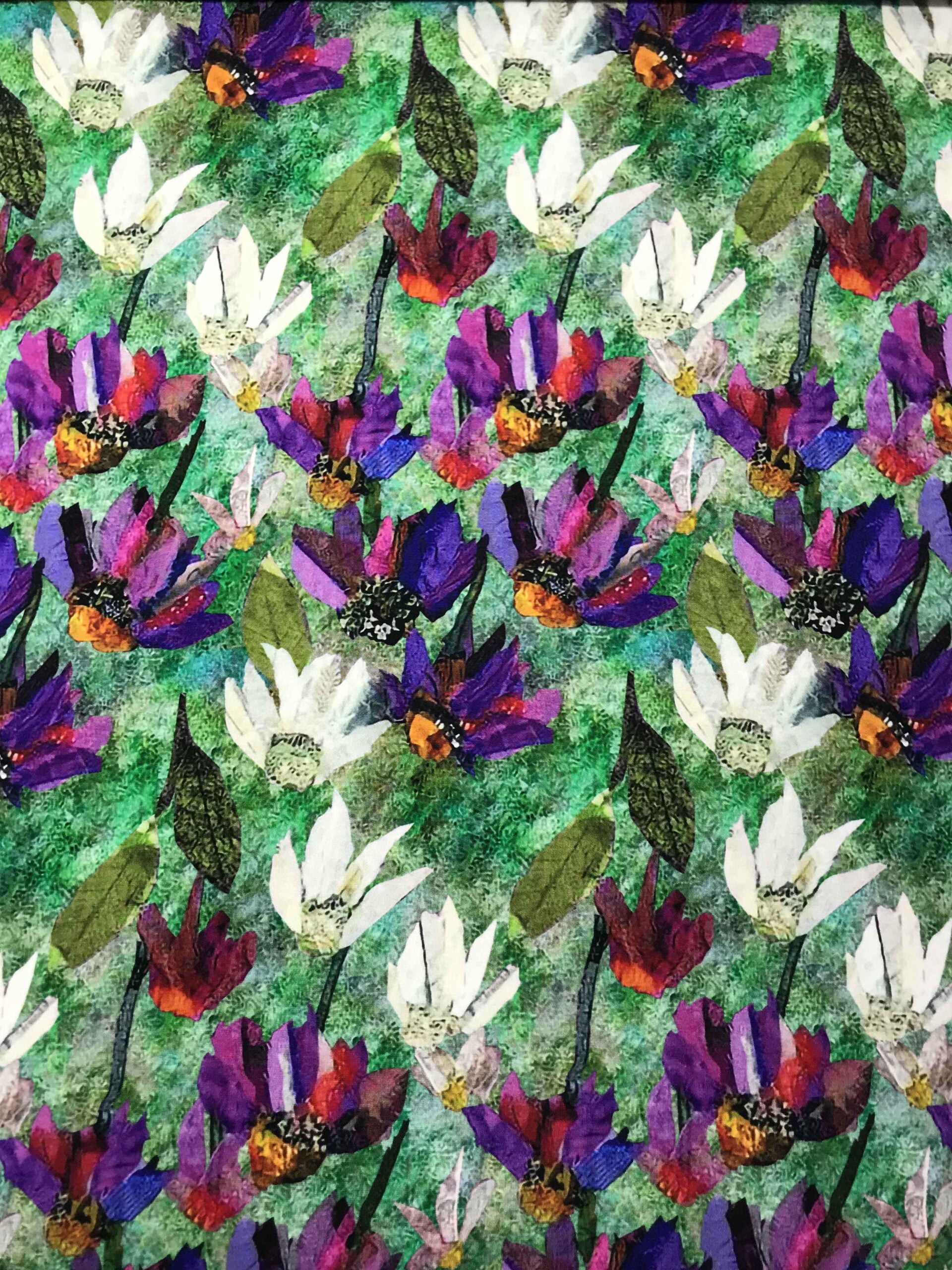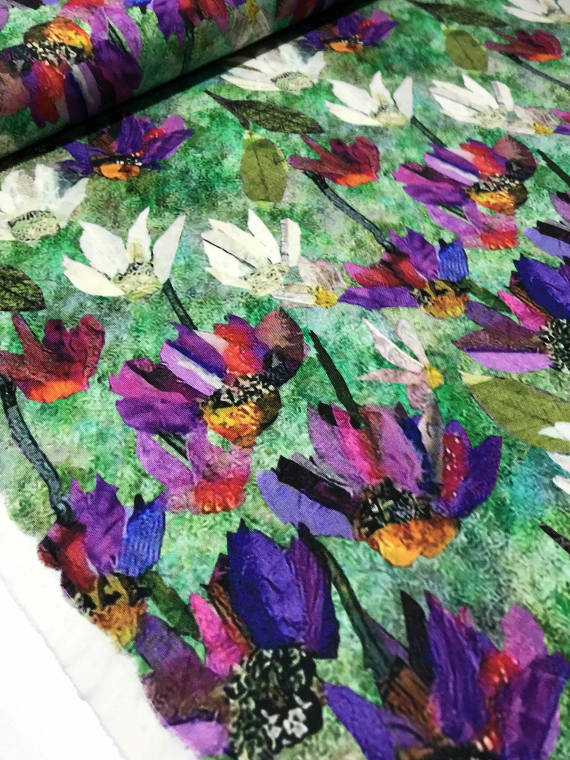 Tissu jersey viscose Fleurs - fond vert