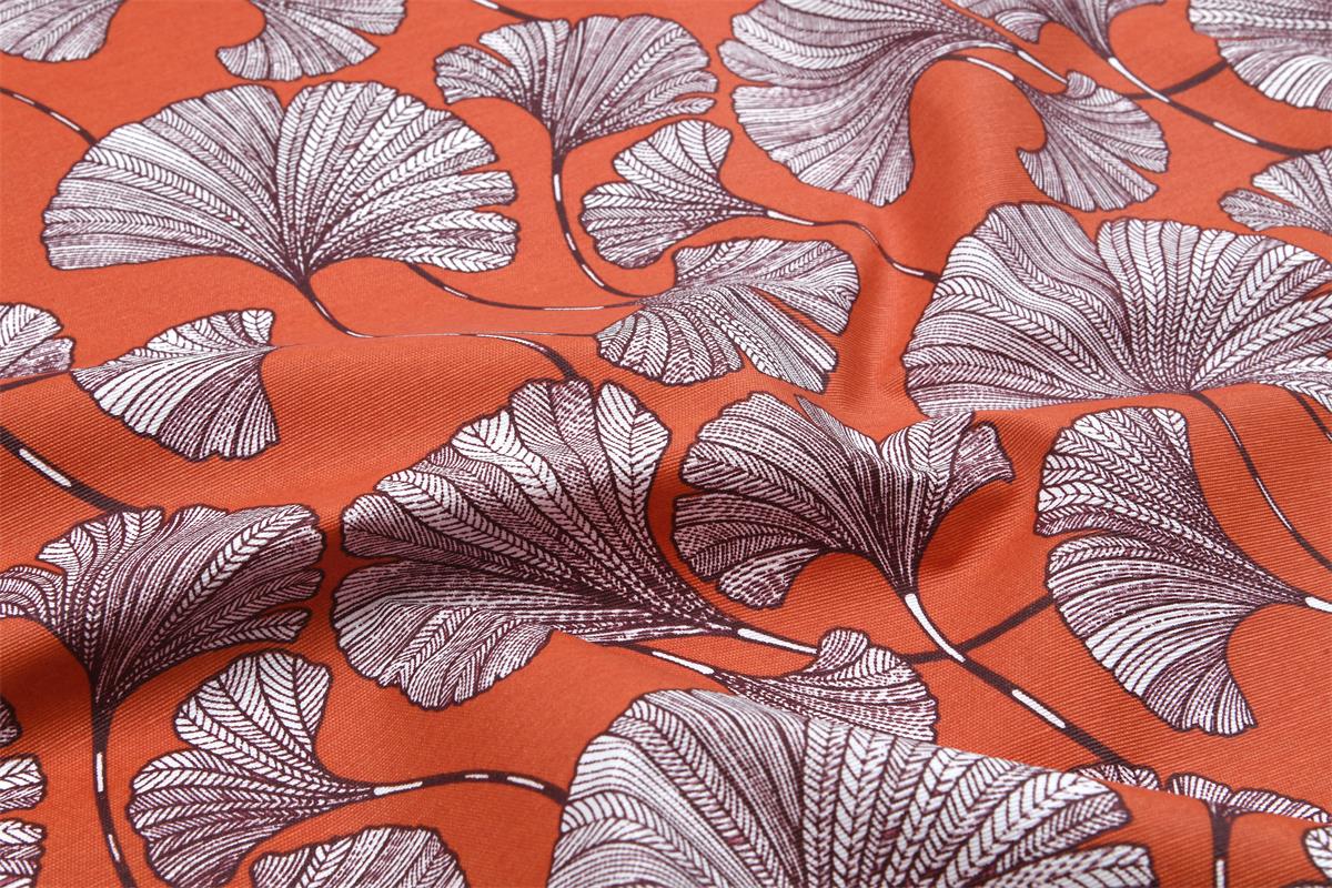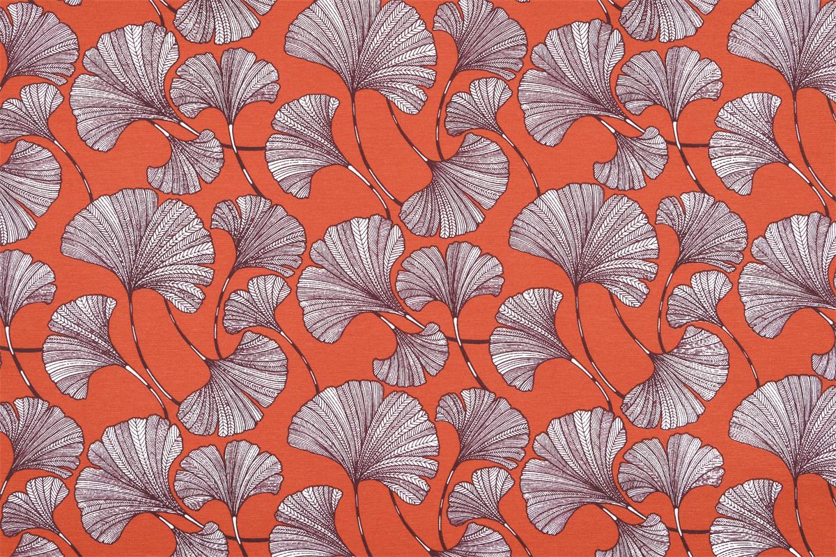Tissu toile de coton bachette Ginkgo – Terracotta