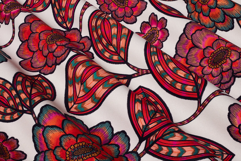 Tissu édition Thevenon Aline, haut de gamme et chic il arbore un motif floral des années 70 avec une finesse d’impression remarquable. Parfait pour déco intérieure, coussins, rideaux ou vêtements bohèmes. Résistant et facile à entretenir, idéal pour projets couture.